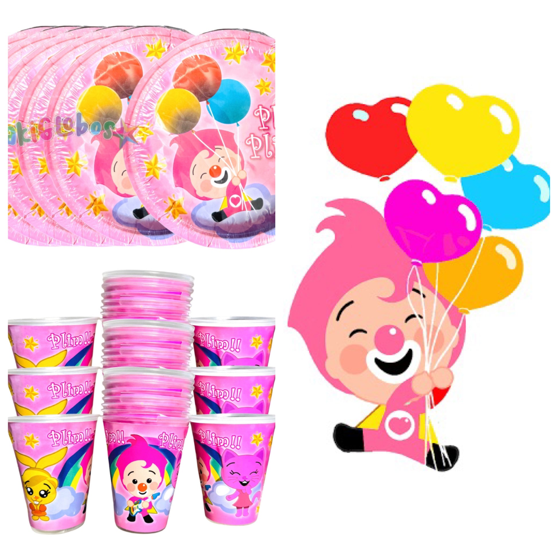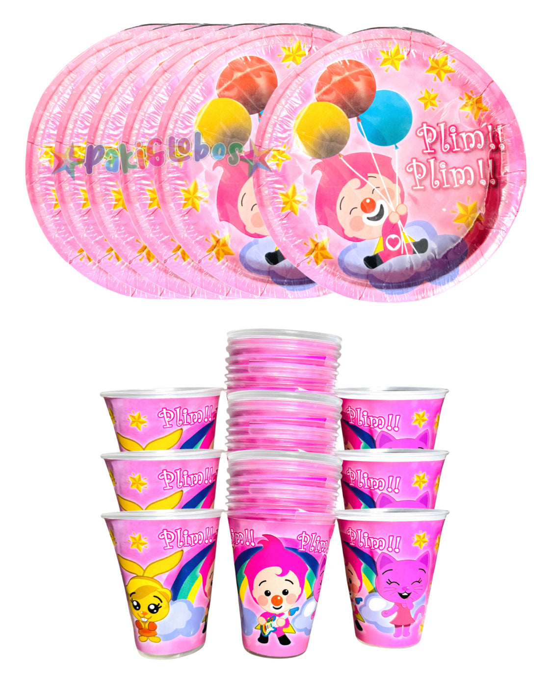40 Guests Invitados Party Kit Vasos y Platos Payasito Rosa