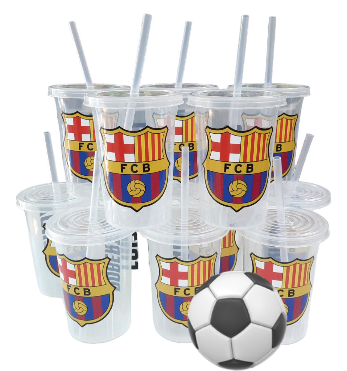 Barcelona Birthday Party Reusable Cups 470ml. Lid and Straw (20 Cups)
